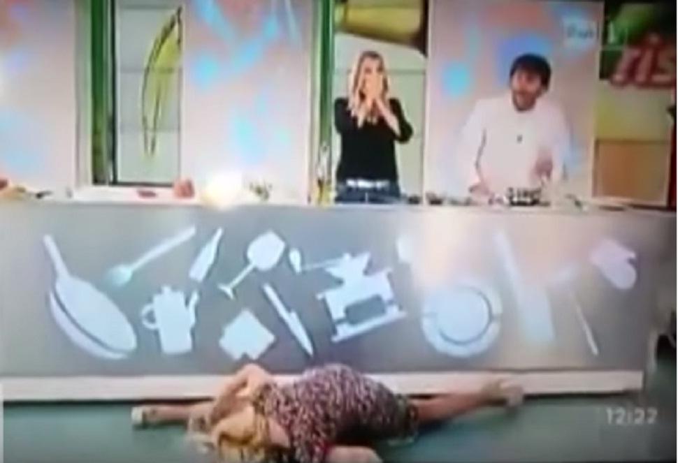 La desgracia sucedió en el segmento de cocina Mezzogiorno Italiano, donde la artista quiso demostrar sus habilidades como bailarinas dando un salto y abriendose de piernas, lo que terminó con Lisa golpeando su entrepierna fuertemente contra el piso.