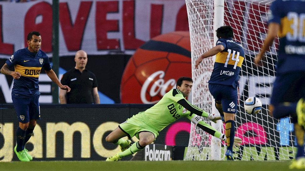 "Nico" le rompió el arco a Marcelo Barovero, que segundo antes le había negado el grito a Carlos Tevez. Aunque nada pudo hacer con el rebote que capturó el volante "Celeste". Ese gol animó a Boca, que se adelantó en el campo y copó la parada en terreno ajeno. El equipo de Rodolfo Arruabarrena dominó esas primeras acciones, pudo incluso irse al descanso por una ventaja más amplia, pero falló el último toque y le dio vida un River que se complicó solo.