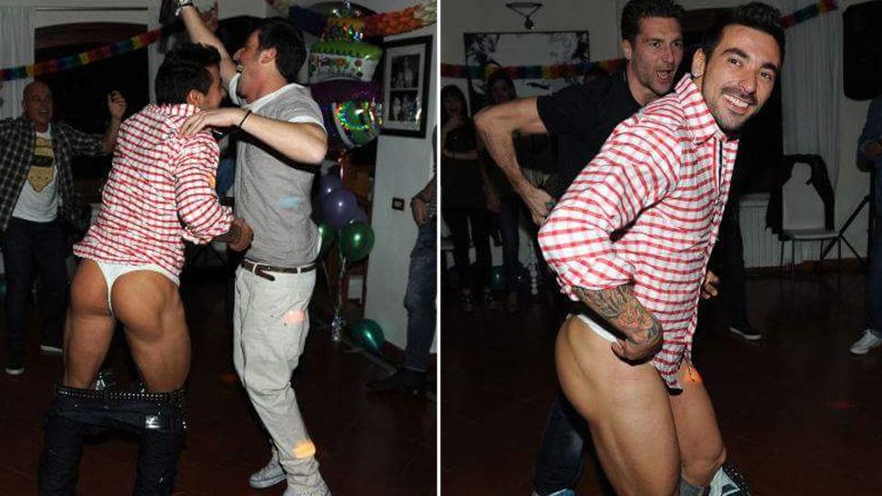 Ezequiel Lavezzi fue escrachado en las últimas horas por la vedette Mariana Diarco, que compartió en su cuenta de Twitter fotos del "Pocho" en tanga.