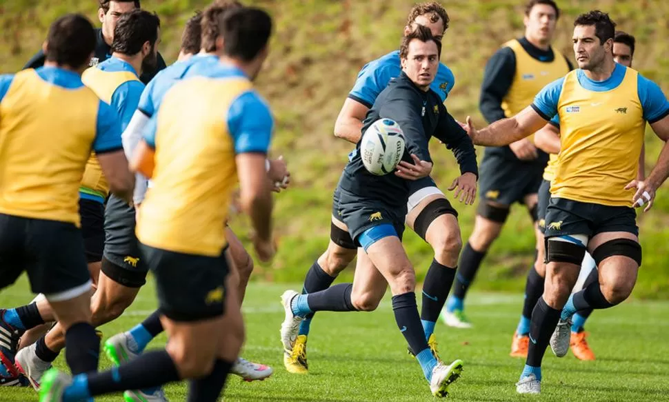 HACER MEJOR LO QUE SALE BIEN. Imhoff intentando un “rever pass” durante la primera práctica de la semana, en la que ya comenzaron “desmigajar” a los Wallabies. PRENSA UAR