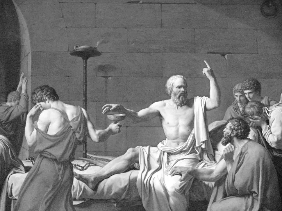 SÓCRATES RECIBE LA CICUTA. El célebre cuadro de David reconstruye los últimos momentos del filósofo. la gaceta / archivo