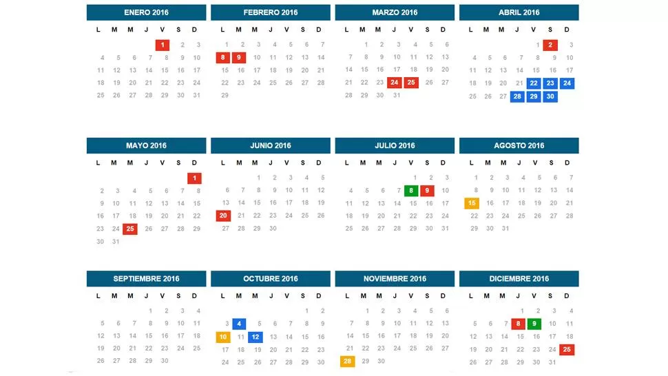 Con octubre casi finalizado, comenzó a circular la clásica frase típica de los últimos meses del año: "el año está perdido". Considerando esta posibilidad, se reveló el cronograma de feriados de 2016. Al igual que el año vigente, habrá 17 feriados y 9 fines de semana largo. Ansiosos, a planificar los descansos.
