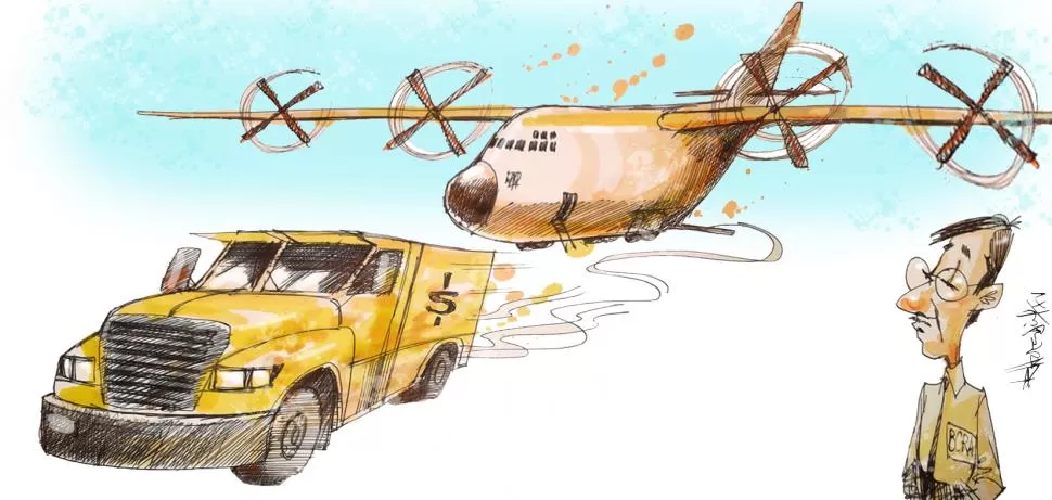 El enorme avión Hércules aterrizó, con cielo nublado, en el Aeropuerto Benjamín Matienzo, de Tucumán. Eran las 12.20 del mediodía del lunes, cuando la aeronave, que se utiliza para transporte militar, tocó la pista de la estación aérea, tras lo cual se estacionó de cola, en la zona de descarga. Fuentes vinculadas al sector de tráfico aéreo de la terminal, consultadas por LA GACETA, señalaron que por la compuerta trasera del Hércules descendieron cuatro camiones de caudales que transportaban dinero.