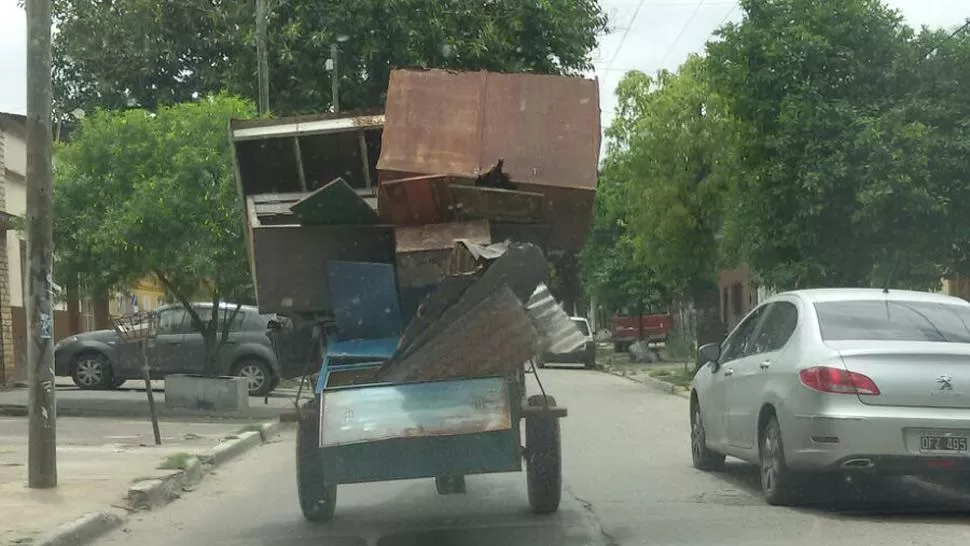 "No tenía para el flete. Pobre animal", con estas palabras un lector describe la imagen que mandó al WhatsApp de LA GACETA. En la fotografía se observa a un carro desbordado de chapas, muebles y maderas. Además del peligro que implica para el caballo verse obligado a cargar semejante peso, el carro es una amenaza para cualquiera que se anime a pasar cerca de él, dado que las cosas que lleva parecen estar apunto de caer.