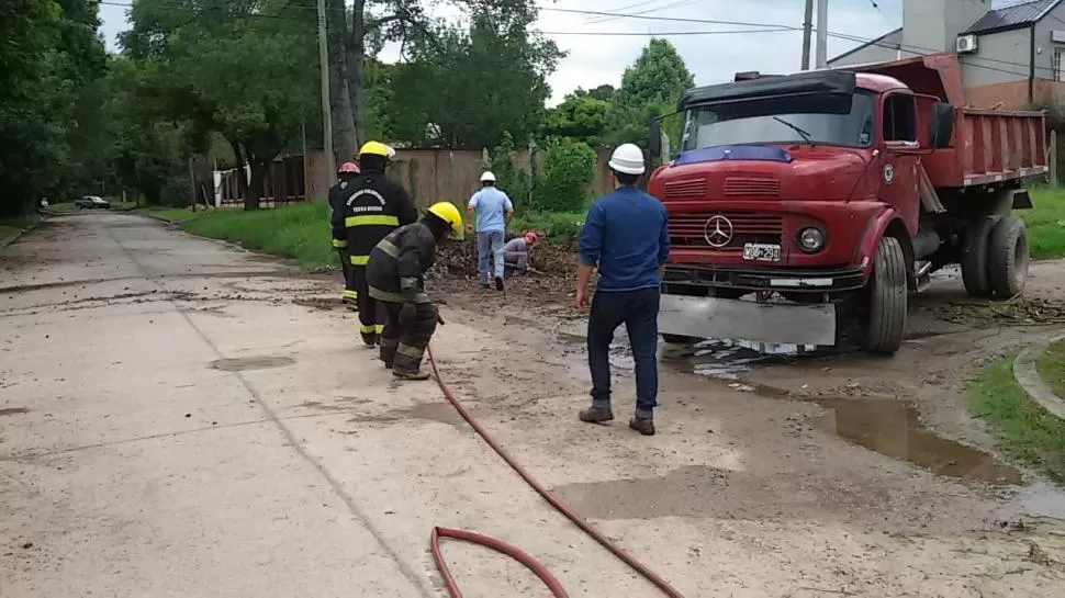 Alertados por ese sonido, los vecinos salieron fuera de sus casas. Las autoridades municipales les solicitaron que corten los servicios de luz y de gas. Julio Rossi -secretario de Gobierno- y Hernán Macedo -subsecretario de Servicios Públicos y Medio Ambiente- se sorprendieron y renegaron de que ese caño se encontrara de modo superficial.