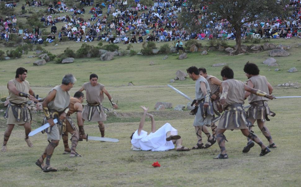 EN ACCIÓN. Escena de La Pasión, en Tafí del Valle, al final de la historia que se cuenta en El Nacimiento.LA GACETA / FOTO DE OSVALDO RIPOLL (Archivo)