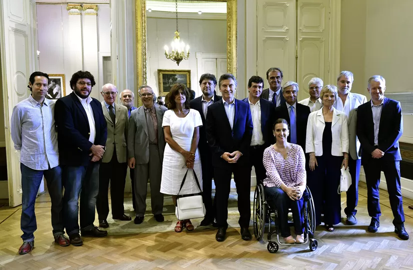 El presidente Mauricio Macri recibió ayer en Casa de Gobierno a un grupo de intelectuales (foto) que le manifestaron su visión del país y su opinión sobre los primeros días de la administración de Cambiemos. El encuentro reunió a 12 personalidades provenientes de ciencias humanísticas, económicas y políticas, investigadores e historiadores, con quienes intercambió ideas sobre la Argentina que viene. Participaron de la reunión la vicepresidenta Gabriela Michetti; el jefe de Gabinete, Marcos Peña; el ministro de Cultura, Pablo Avelluto, y el secretario de Integración Federal y Cooperación Internacional de la cartera cultural, Iván Petrella. Asistieron a la invitación Marcos Novaro (sociólogo, historiador y doctor en filosofía), Eduardo Zimmermann (abogado e historiador), Eduardo Levy Yeyati (macroeconomía, finanzas internacionales y banca), Eduardo Fidanza (sociólogo), Ernesto Schargrodsky (presidente de la U. Torcuato Di Tella) y Liliana de Riz (socióloga e investigadora del Conicet). También estuvieron Natalio Botana (politólogo y periodista), Vicente Palermo (politólogo, periodista e investigador del Conicet), Luis Alberto Romero (historiador e investigador del Conicet), Hilda Sábato (historiadora e investigadora del Conicet), Alejandro Katz (literato y lingüista) y Juan Tokatlian (sociólogo y relaciones internacionales)