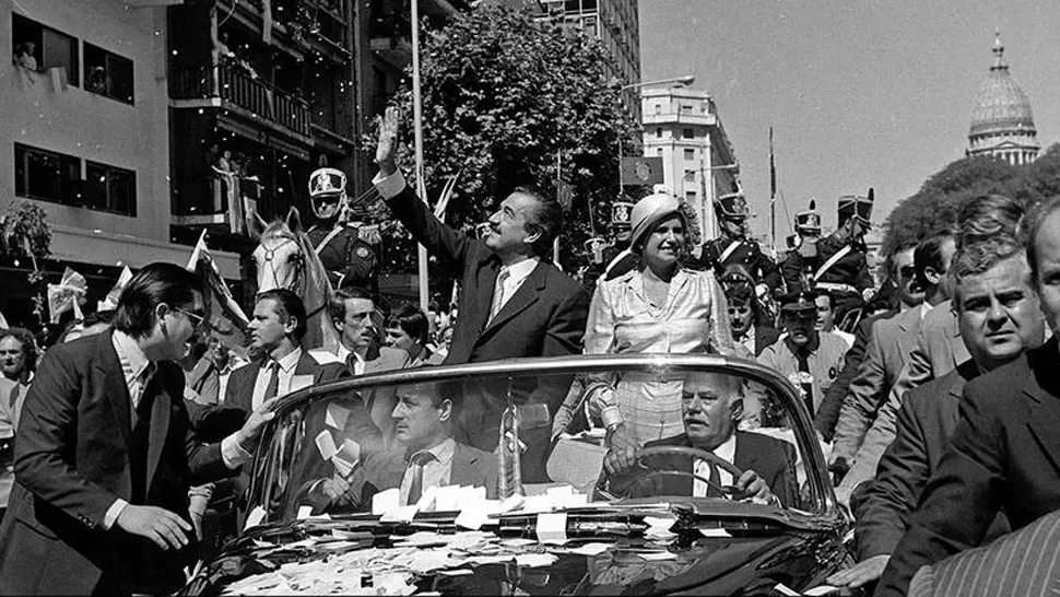 DÍA DE CELEBRACIÓN. Alfonsín y su esposa recorren las calles para festejar la asunción del presidente. TELAM DÍA DE CELEBRACIÓN. Alfonsín y su esposa recorren las calles para festejar la asunción del presidente. TELAM