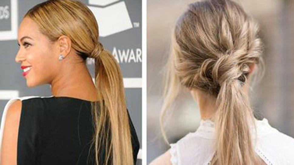 Cola de caballo prolija o despeinada atado con el mismo pelo