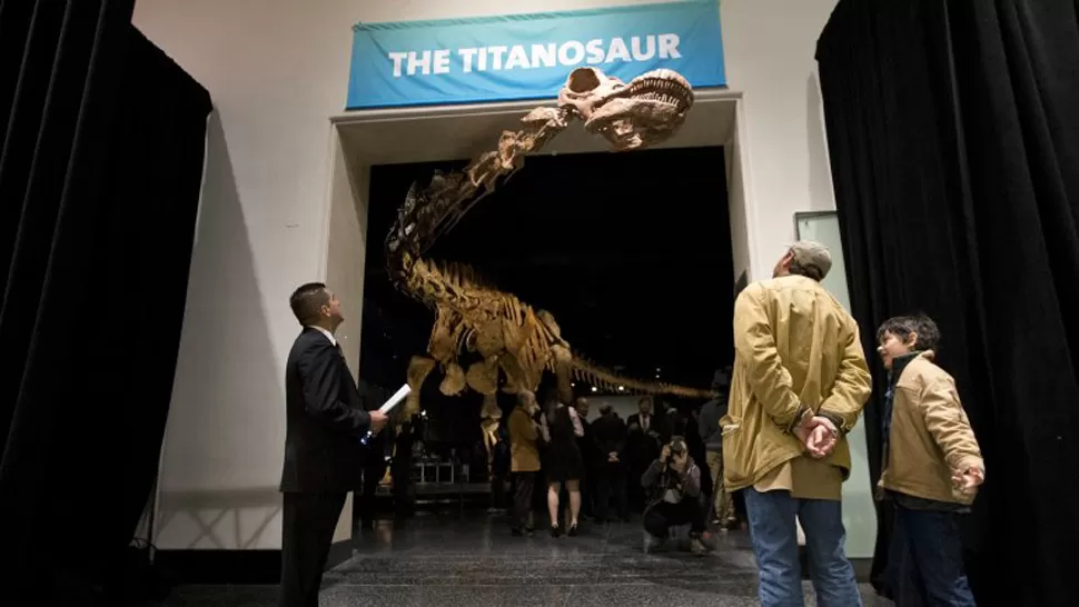 El titanosaurio argentino, el dinosaurio hallado en la provincia de Chubut en 2014 y desde entonces el más grande descubierto en el mundo, se convirtió hoy una de las principales atracciones del Museo de Historia Natural de Nueva York, que con gran expectativa adaptó sus instalaciones para recibir al gigante patagónico.