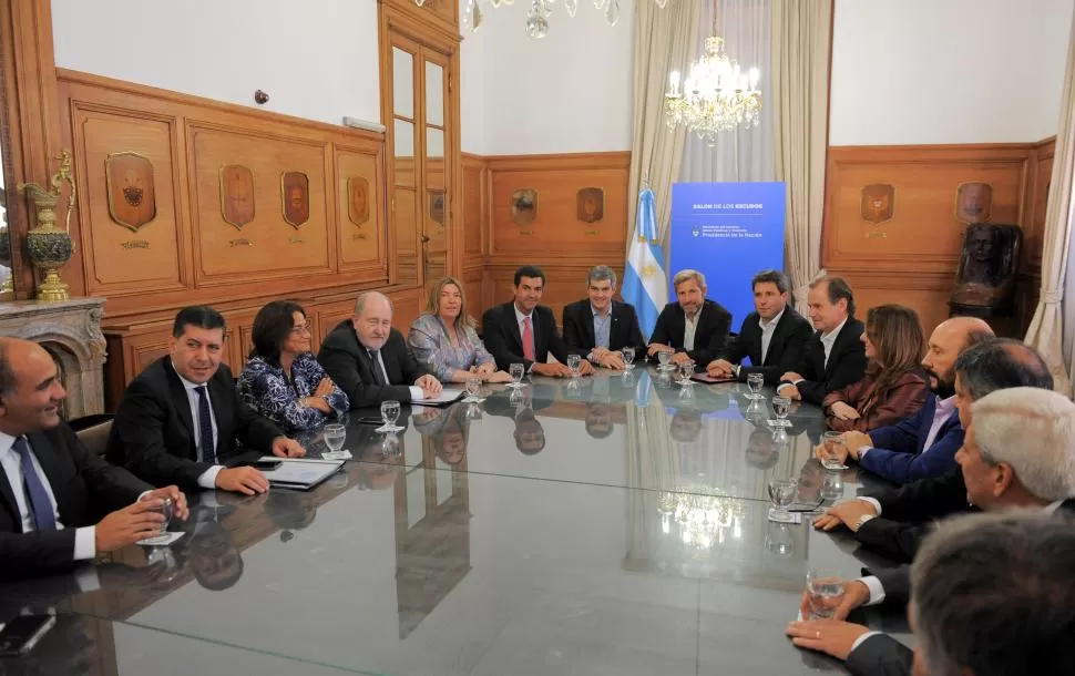 POR MÁS RECURSOS La semana pasada, los gobernadores justicialistas se reunieron con el ministro del Interior, Rogelio Frigerio (en el extremo de la mesa). dyn POR MÁS RECURSOS La semana pasada, los gobernadores justicialistas se reunieron con el ministro del Interior, Rogelio Frigerio (en el extremo de la mesa). dyn