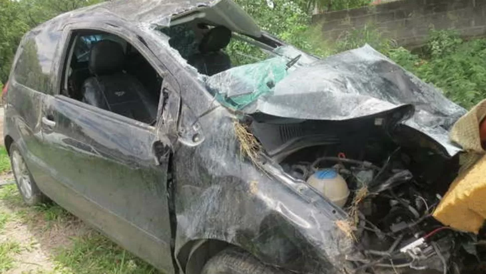 ASÍ QUEDÓ EL AUTO. El vehículo, un Volkswagen Fox tipo Sedan. FOTO GENTILEZA DIARIO EL LIBERAL.