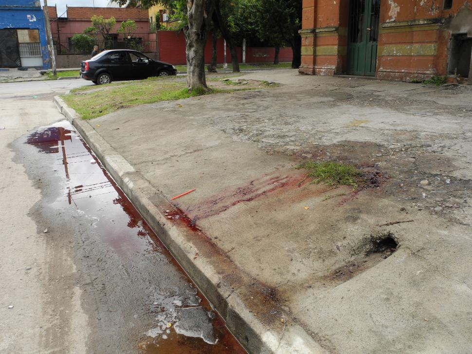 En la escena del crimen, mientras tanto, una mancha roja cubría la vereda. Era tanta la sangre que había perdido la víctima que hasta el agua que se había juntado por la lluvia en el cordón continuaba teñida de rojo, varias horas después del asesinato.