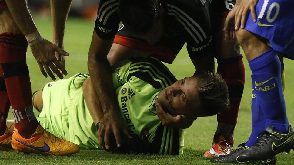 ASÍ QUEDÓ. Unsain se llevó la peor parte del fuerte choque con Tevez. (FOTO TOMADA DE TWITTER) ASÍ QUEDÓ. Unsain se llevó la peor parte del fuerte choque con Tevez. (FOTO TOMADA DE TWITTER)