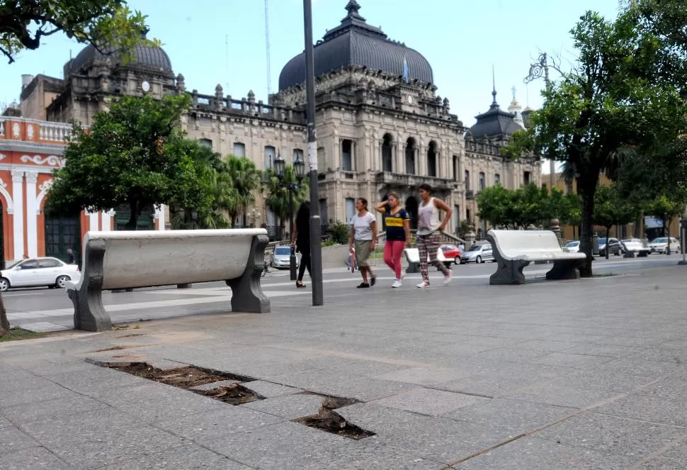 ROTURAS. Frente a la mismísima Casa de Gobierno son evidentes el descuido y la falta de mantenimiento. LA GACETA / FOTOS DE MARÍA SILVIA GRANARA.