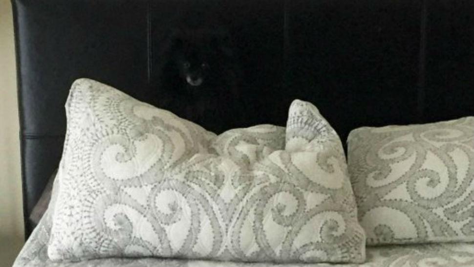 Can you spot the cheeky pooch? If you’re stumped, like thousands of others who have viewed this image, the clue is in the headboard