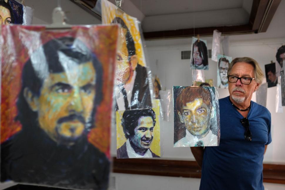 Apenas llegado a Tucumán, Carlson se instaló en el Virla a montar sus trabajos. A un costado estaba su valija y al otro, una caja repleta de cuadros de “Aparecidos”, que desembalaba con cuidado y colgaba de las paredes.
