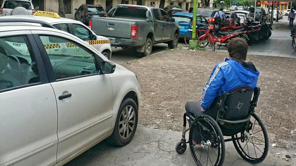 Según afirma, sucede esto desde que es chico: en la cuadra de Maipú al 900 hay autos estacionados sobre las veredas desde las 9 de la mañana hasta las 3 de la madrugada (allí funciona el Casino y distintos bares). "Con mi discapacidad necesito por lo menos del acceso de mi casa y siempre tengo un auto ahí, en la puerta", describe Delavaux.