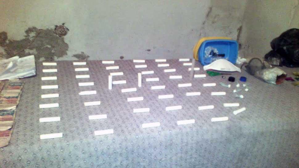 El detenido no pudo hacer nada para ocultar la droga. En su poder tenía la cocaína, siete bochas listas para comercialir, un tubo de prensa para armar tizas, 160 recortes de plástico, coladores con restos de cocaína y barbijos. Uno de los menores, de 14 años, tenía en su poder dos "ravioles" y adujo ser un comprador. Ambos fueron entregados a sus padres, luego de la constatación de sus domicilios.