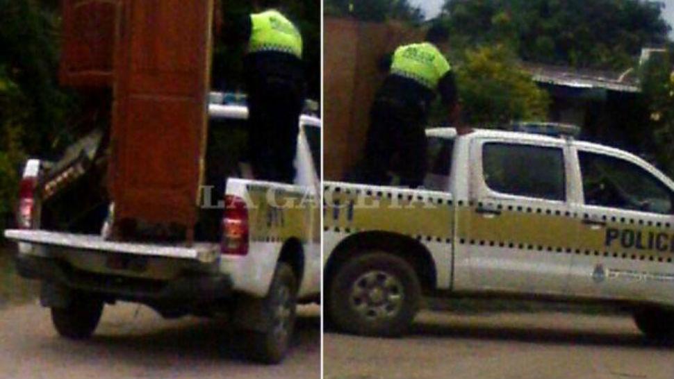 fotografía publicada hoy en LA GACETA, donde se observa a un patrullero de la Policía de Concepción trasladando un armario. Tras el escándalo, desde la Unidad Regional Sur informaron que se realizaron las investigaciones correspondientes para el esclarecimiento de lo acontecido.