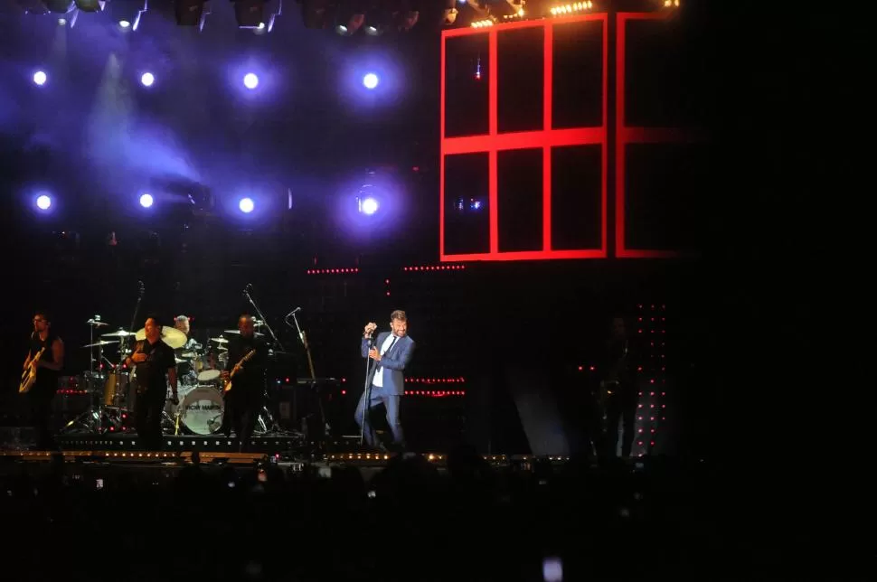Es entonces cuando, desde una decena de metros de altura y entre bloques compuestos por pantallas led, Ricky Martin se hace presente. Como un dios del Olimpo, baja lentamente en una plataforma móvil para deleitar a sus fieles incondicionales (el estadio explotaba con 17.000 personas) con poco más de una hora y media de recital, en las cuales no falta ninguno de los grandes éxitos de sus tres décadas de carrera.