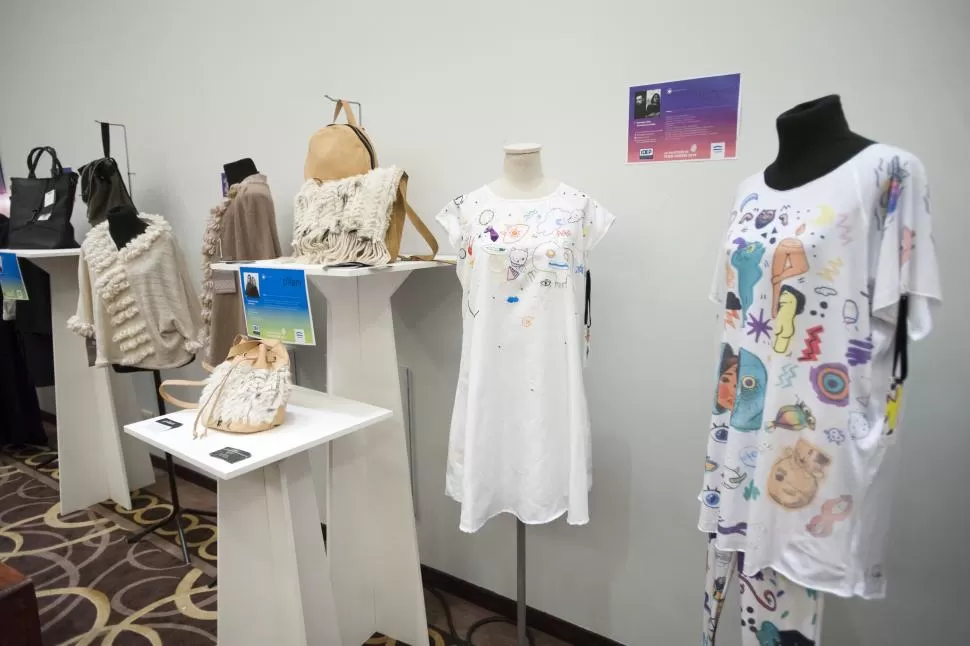 Una lámpara rojo carmesí está ubicada junto a banquetas de madera y cuero; un poco más allá hay carteras de pelo con detalles en alpaca y vestidos bordados a mano. Esos objetos/prendas son parte de un stand del IDEP (Instituto de Desarrollo Productivo), ubicado en la feria del evento, e integran la selección tucumana que participará en la Feria Puro Diseño, que se realizará en mayo, en Buenos Aires. Las marcas son Josefina Luna, Mûre, Nicéfora, Salamanca y Villamax (indumentaria); Carnavalito, La Fábrica y Ruiseñora (objetos); Berboff, Mirá y Pilani (accesorios); Diseño Acapulco, La Vaga Duerme y Qiri (mobiliario).