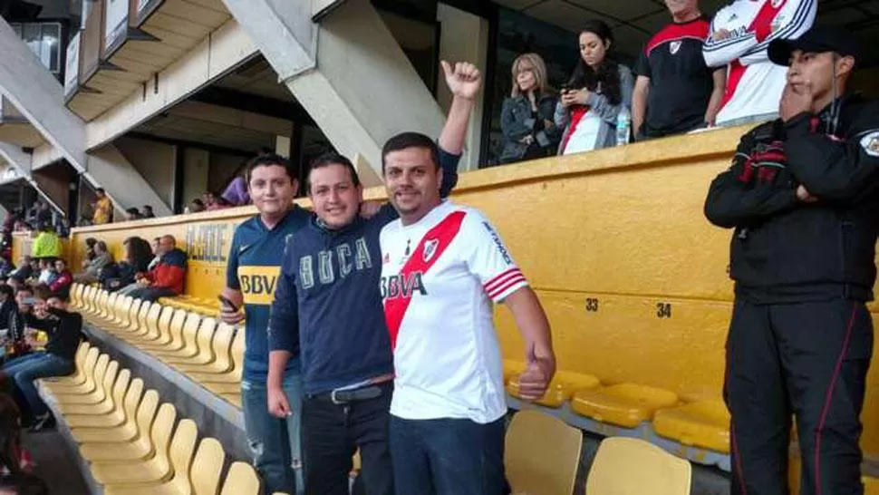 DeportesGRAN EJEMPLO Allá son amigos Hinchas de Boca que viven en Ecuador fueron a ver a River y hasta posaron con otros fanáticos "Millonarios" en las tribunas Compartir Whatsapp Facebook X Copiar dirección URL 28 Abril 2016 Seguir en Tamaño texto Comentarios NOTICIAS RELACIONADAS River perdió en Quito y complicó su clasificación Lo más popular Primera Nacional: el mercado de pases rumbo al 2026, con San Martín de Tucumán a la espera de refuerzos Primera División: así se mueve el mercado de pases hacia el 2026 y Atlético Tucumán empieza a definir su futuro Cómo el calendario de la AFA pone en jaque los viejos rituales del fútbol Cartas de lectores: Cártel de los Soles Cartas de lectores: creación del gremio docente Un paso y ya es selva: la experiencia de adentrarse al Jardín Botánico de Horco Molle