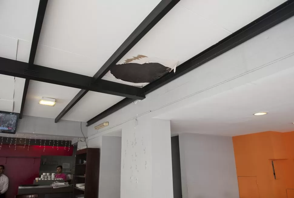 ROTURA. El orificio por el que cayó la mujer al salón principal del negocio. la gaceta / foto de florencia zurita ROTURA. El orificio por el que cayó la mujer al salón principal del negocio. la gaceta / foto de florencia zurita