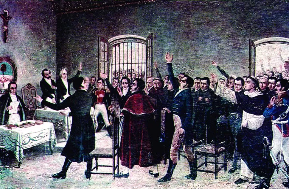 El solemne momento del 9 de julio de 1816, ha sido representado hasta el cansancio en dibujos, pinturas y esculturas. Desde los libros escolares -y obviamente el “Billiken”- hasta esos trabajos de gran envergadura guardados en museos que nadie visita, artistas buenos y no tan buenos han rivalizado para representar a los congresales de Tucumán aclamando la Declaración de la Independencia.