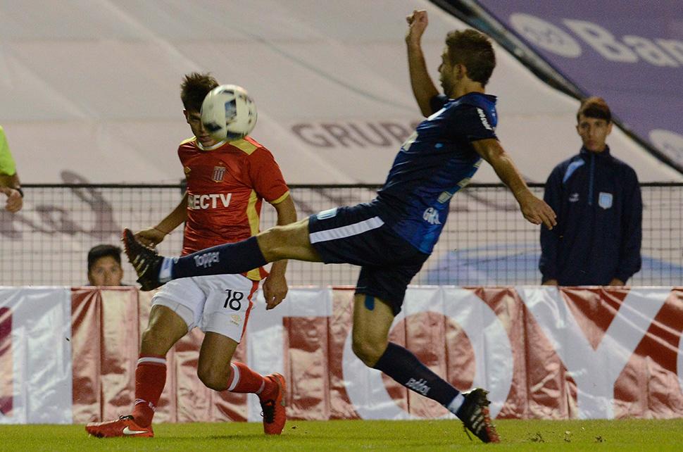 INTENSIDAD. El primer tiempo tuvo esa característica en Avellaneda. Sergio Vittor va al cruce luego de una subida por el lateral de Augusto Solari.