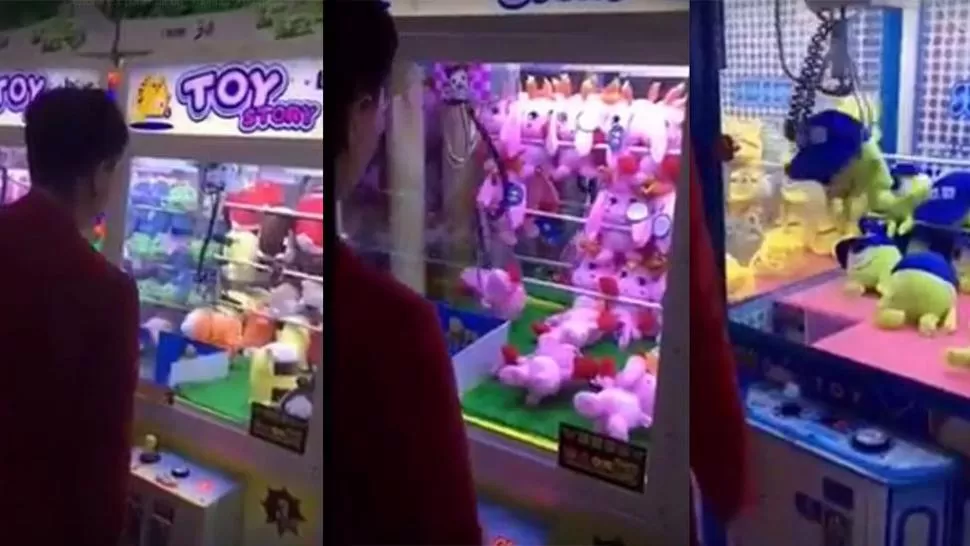 El joven desarmó una máquina y explicó el procedimiento a la perfección. No es magia, simplemente es agarrar el premio antes de que la garra afloje la presión.