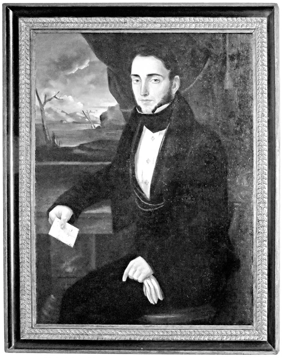 El personaje se instala apenas a la derecha del cuadro. La pose relajada deja en segundo plano un paisaje que toma el color del crepúsculo. Los ojos celestes se clavan en quien los mira. Las largas patillas, muy a la moda, bordean la quijada pero dejan libre el mentón. Una corbata negra le eleva el cuello. Si tenemos algún interés en la historia de las imágenes, podemos decir que es una pintura del siglo XIX, con todas las características del romanticismo. Excepto, tal vez, para su familia, el retrato que presentamos no debe remitir a ningún nombre. Pues bien no demos más rodeos, digamos que se trata de Felipe Posse, tucumano, pintado al óleo en Buenos Aires en 1835, cuando tenía 29 años. La dedicatoria que sostiene en su mano derecha dice: “Para la Sra Da Águeda Tejerina. En Tucumán”. O sea, para su madre.