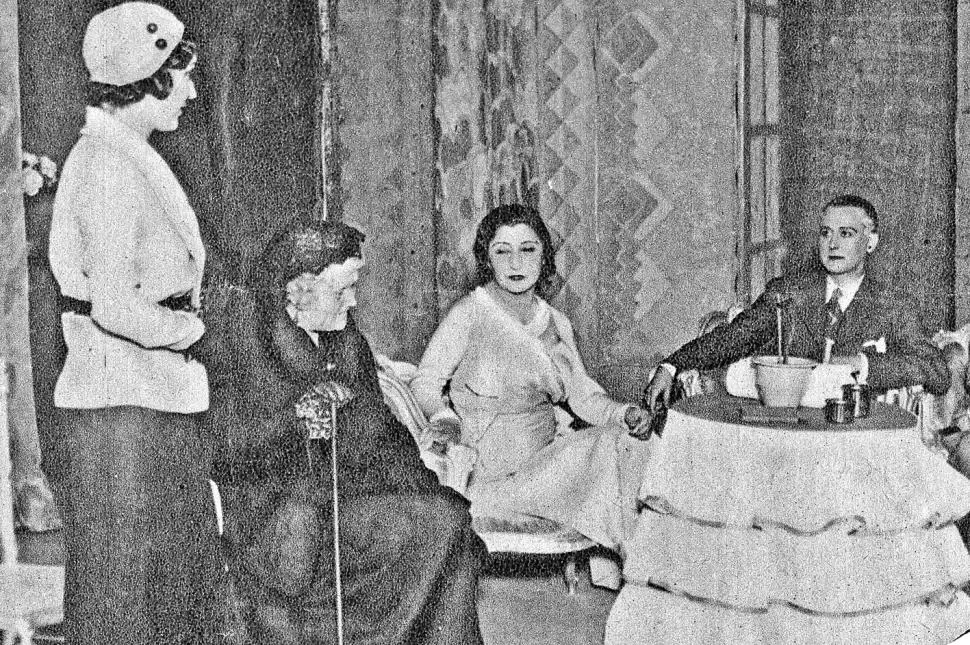 EN EL ODEON PORTEÑO. Lola Membrives (centro) en plena actución en la obra de los hermanos Alvarez Quinteros: “Doña Hormiga”.