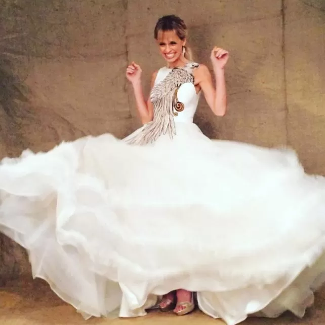 POR DOS. Mariana Fabbiani apostó por un diseño de Javier Saiach, en shantung de seda natural, falda con vuelos y un detalle que lo hacía resaltar: un águila bordado a mano. Luego, hizo un cambio: usó un vestido negro bordado, también de Saiach. POR DOS. Mariana Fabbiani apostó por un diseño de Javier Saiach, en shantung de seda natural, falda con vuelos y un detalle que lo hacía resaltar: un águila bordado a mano. Luego, hizo un cambio: usó un vestido negro bordado, también de Saiach.
