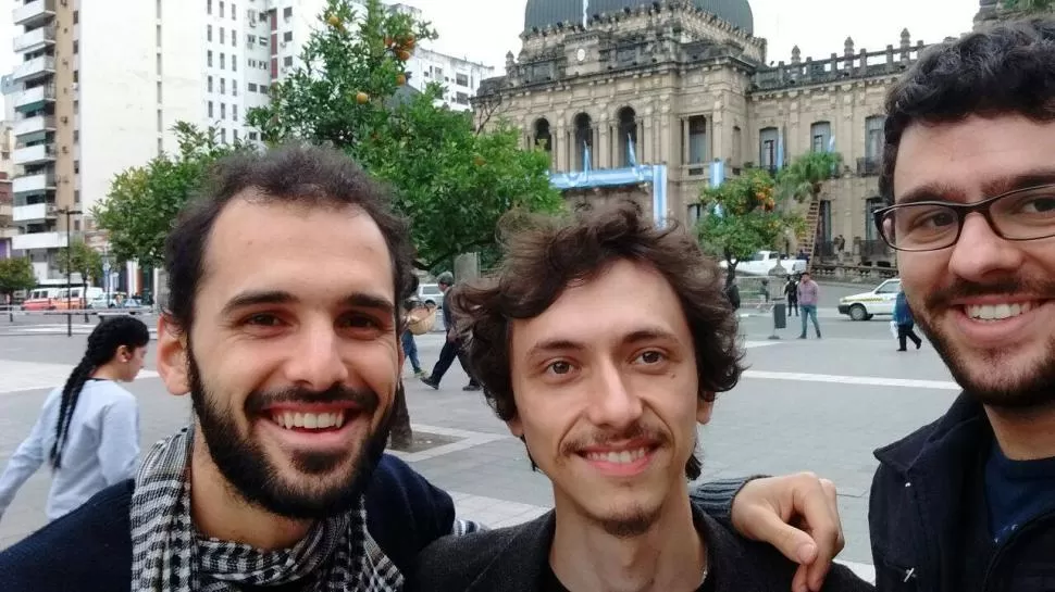 SELFIE EN LA PLAZA. Rodrigues, Destro y Bastos, de Campinas al Virla. facebook de Amago trio