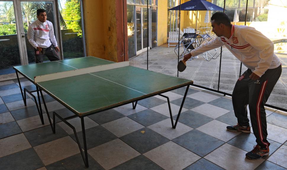 Esteban Goicoechea, Iván Agudiak y Diego Bucci eligieron matear en el lobby del hotel, mientras conversaban y leían los diarios locales. “Chopi” y Gonzalo se desafiaron al tenis de mesa, con el resultado arriba mencionado.