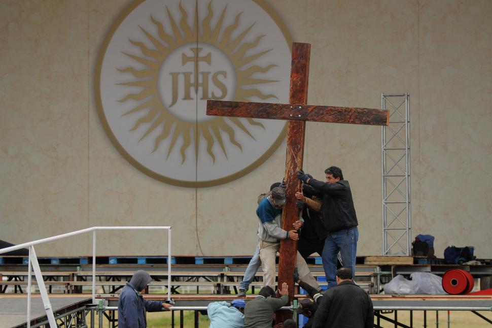 El buen tiempo dio un fuerte envión a los preparativos en el hipódromo, donde tendrán lugar los actos centrales del XI Congreso Eucarístico Nacional. Aunque no todo salió como se esperaba. Un pequeño contratiempo llevó varias horas de trabajo y esfuerzo a quienes pretendían colocar una inmensa cruz de quebracho colorado, de más de tres metros de altura, sobre el altar donde se oficiarán las misas principales. Pero la estructura no parecía dispuesta a soportar los 300 kilos de la pieza, a la que además se sumaría luego un Cristo labrado en nogal de 1,75 metro.