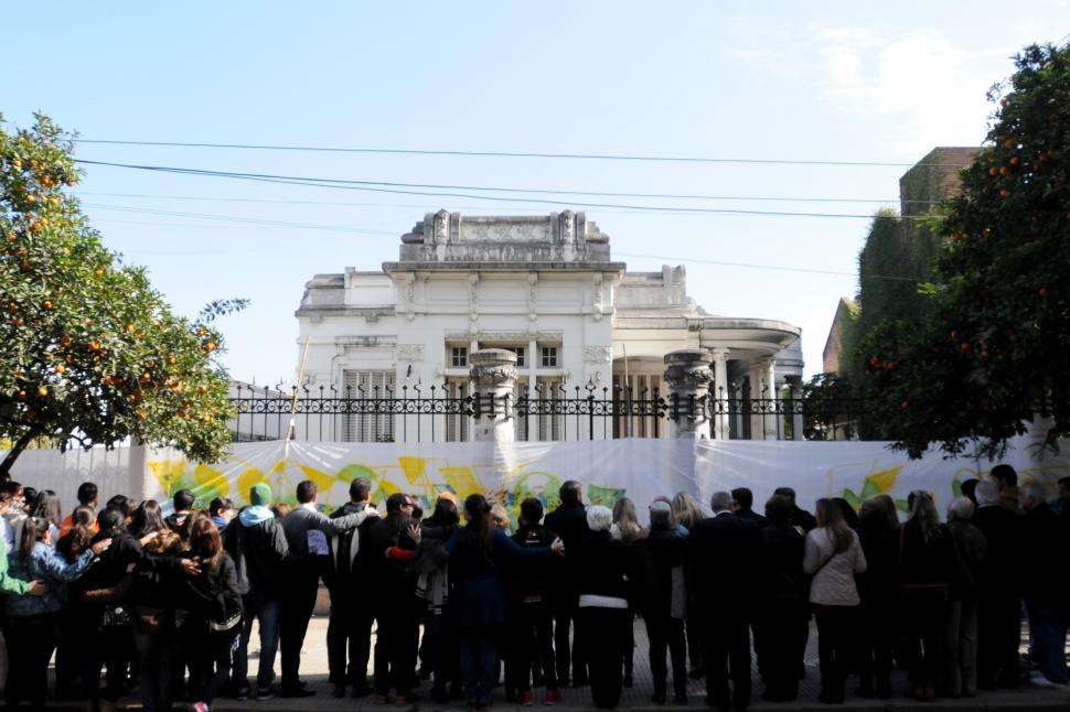 Jóvenes militantes como Paula y Manuel -entre muchos otros- y estudiantes como Alejandro, Ximena, Belén y Nelson, se movilizaron ayer para reclamar la expropiación de la casa Sucar. Con papel de diario y mucha prolijidad protegieron, literalmente, las columnas de la verja de la casa, así como buscan protegerla de la piqueta. Luego extendieron un lienzo de 20 metros y le dejaron el lugar a Isaac Abdala; su grafiti colorido fue la primera “capa” de abrazo” que recibió la casa Sucar, cuyos propietarios impulsan su demolición.