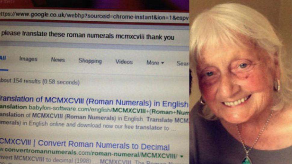 "Por favor, traduce estos números romanos MCMXCVIII, gracias", escribió la anciana de 86 años en su computadora a la espera de que el buscador más famoso del mundo le contestara.