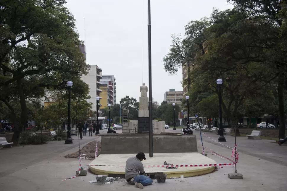 AMPLÍAN LA BASE DE LA ESTATUA DE YRIGOYEN. La espalda del monumento está siendo mejorada, al igual que la iluminación de toda la plaza. LA GACETA / FOTOS DE JORGE OLMOS SGROSSO.   AMPLÍAN LA BASE DE LA ESTATUA DE YRIGOYEN. La espalda del monumento está siendo mejorada, al igual que la iluminación de toda la plaza. LA GACETA / FOTOS DE JORGE OLMOS SGROSSO.