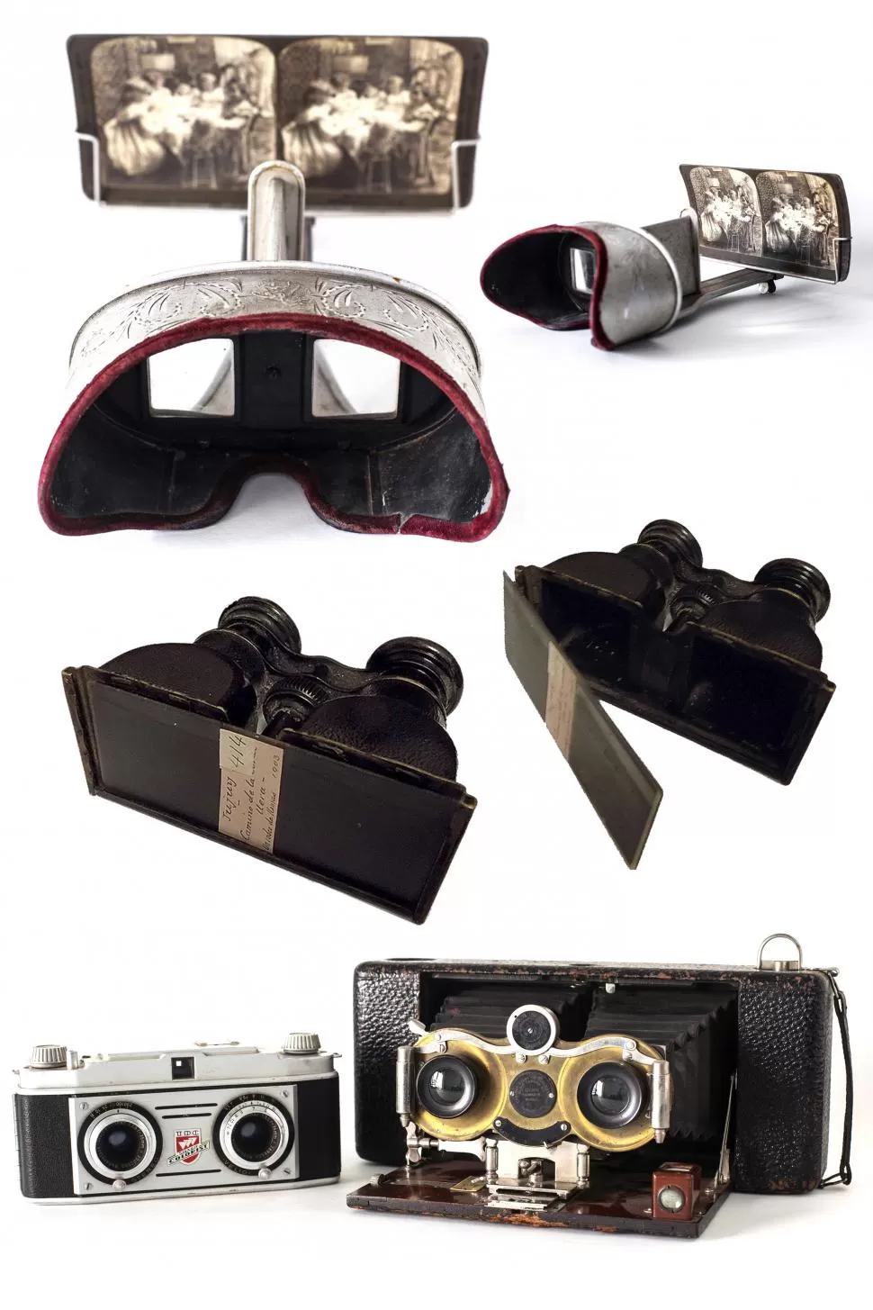 La técnica comenzó a estudiarse hacia 1830 y durante la década del 40 ya había aparatos estereoscópicos para daguerrotipos. No tardaría mucho en convertirse en un medio de masas, al menos en los EEUU y en Inglaterra. En 1857, la London Stereoscopic Company había vendido 50.000 aparatos. Recién en la segunda y tercera décadas del siglo XX comenzó a decaer su interés, aunque no desapareció. A lo largo del siglo pasado, se pudo ver cámaras estereoscópicas -como la de 1950 que mostramos-. Tampoco hay que creer que fue un entretenimiento sostenido por mero interés económico. Fotógrafos como los norteamericanos Timothy O’Sullivan y William Henry Jackson, o el inglés Roger Fenton, hoy considerados ineludibles mojones de la historia de la fotografía, incluyeron gran cantidad de estereoscopías entre su producción.
