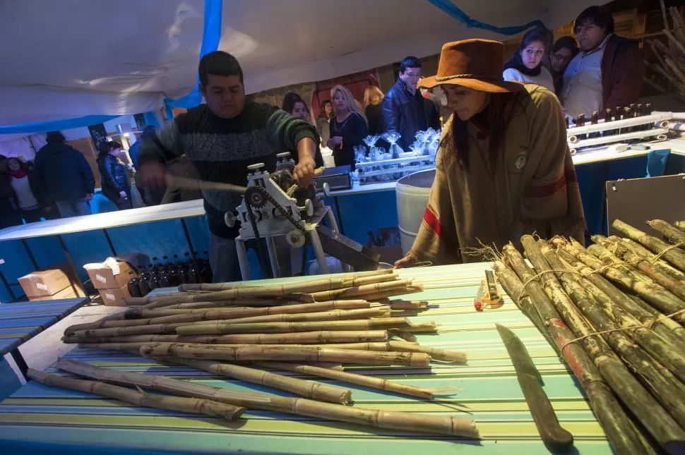 El trabajo de un pequeño trapiche. En el stand de Doña María con una máquina extraen jugo de caña. Entre otros productos, ofrecen licor de caña y mandarina. LA GACETA / FOTOS DE DIEGO ARÁOZ