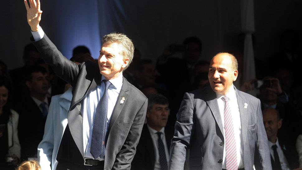 MACRI Y MANZUR. El presidente y el gobernador, durante el desfile del Bicentenario. ARCHIVO