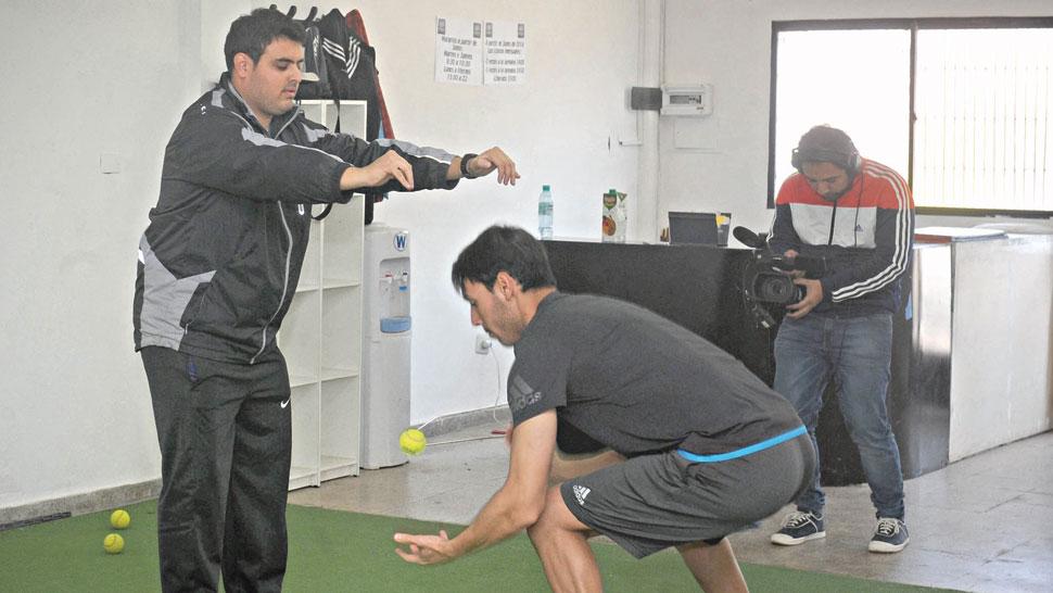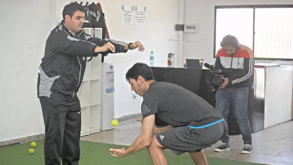 DE UN LADO PARA EL OTRO. El profesor Gonzalo Cano exige a Taborda arrojándole pelotas para un lado y para el otro. LA GACETA / ANTONIO FERRONI