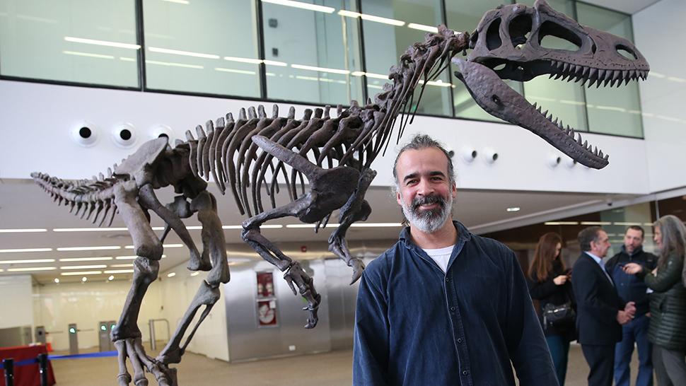 GIGANTE. El dinosaurio fue presentado por el paleontólogo Sebastián Apesteguía. TÉLAM