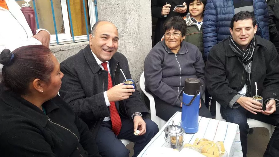 RECORRIDA. El gobernador toma mate con los vecinos. ARCHIVO
