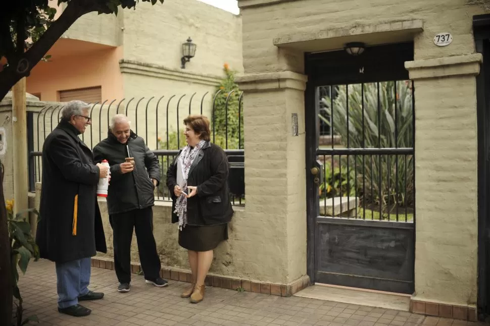 A LA CALLE NUEVAMENTE. Pedro, Rubén y María Beatríz lamentan haber perdido la costumbre de matear en la vereda y ahora quieren recuperarla. LA GACETA / FOTO DE INÉS QUINTEROS ORIO.