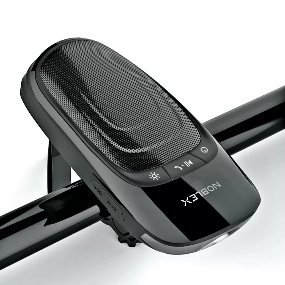 Se puede andar en bici, escuchar música, hablar por teléfono y prestar atención al tránsito al mismo tiempo. Este equipo de audio inalámbrico de Noblex (modelo PSB217B) se coloca en el manubrio de la bici y se vincula al celular vía bluetooth para disfrutar de un entrenamiento o de un paseo con música, sin aislarte del entorno. Además, tiene una linterna led para alumbrar el camino.