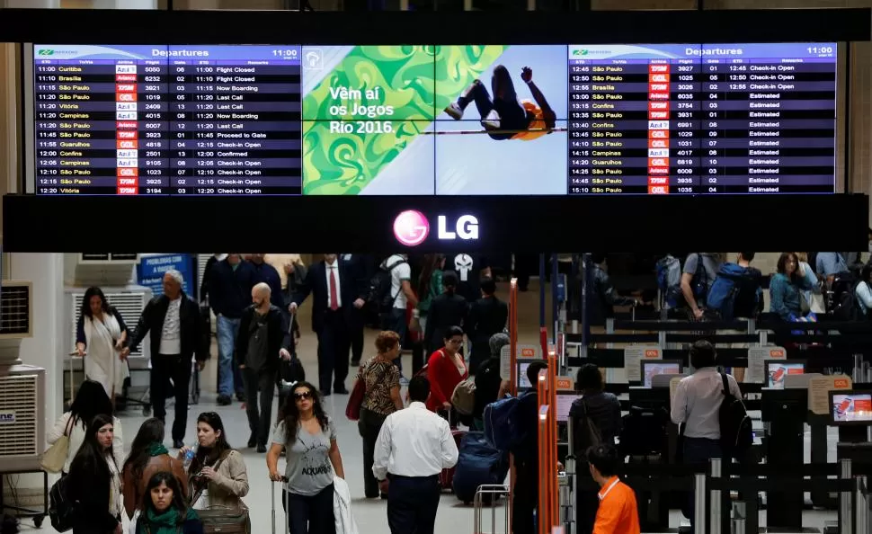 A medida que se acercan los Juegos Olímpicos en Río de Janeiro siguen intensificándose los controles de la seguridad. Además de distintos puntos de la ciudad y de la playa (foto de la derecha), las medidas se extremaron desde el fin de semana en los aeropuertos, en especial en el Tom Jobim, que será el centro de los arribos y salidas durante los Juegos. Todos los viajeros (centro), tanto de vuelos nacionales como internacionales, debieron pasar por una requisa más exhaustiva que la acostumbrada -que provocó hasta pérdida de vuelos-, pero los controles no se suspendieron. Así, un equipo antiterrorista desarmó un bolso sospechoso (izquierda), que había sido abandonado en la tradicional avenida Copacabana. En tanto, el grupo brasileño llamado “Ansar Al Khilafah Brazil” expresó su apoyo a la milicia terrorista Estado Islámico.