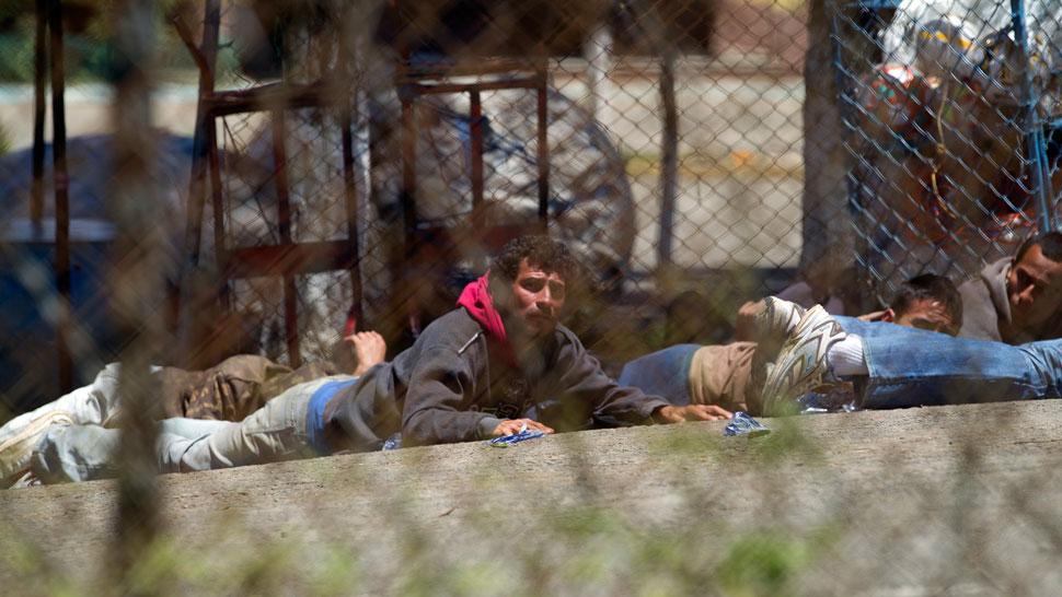 Tras el tiroteo, un grupo de presidiarios espera en el suelo que las autoridades definan qué harán con ellos.